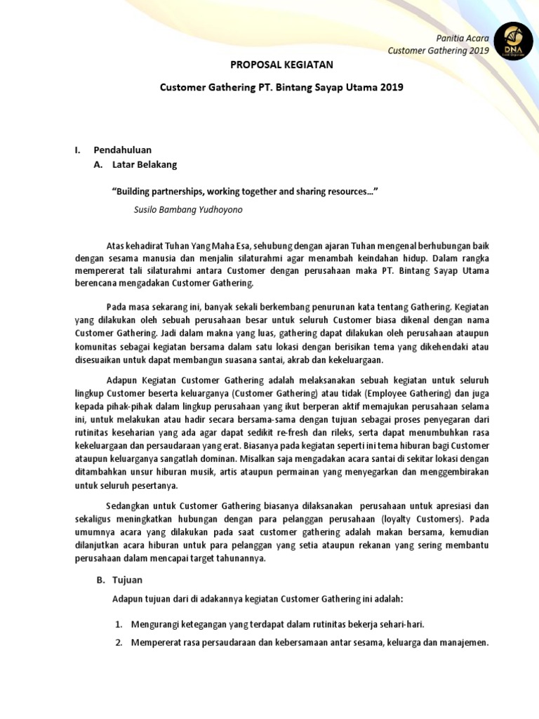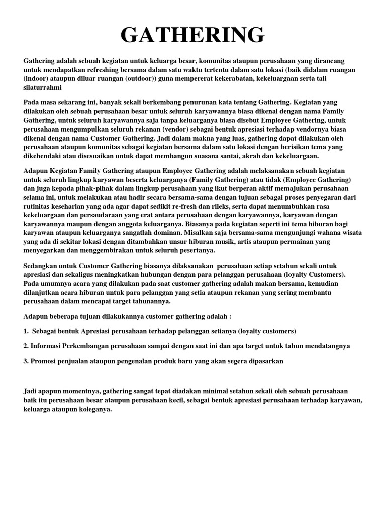 APPROACH Create Gathering idea yang menarik dengan didukung tempat representative agar memberi kepercayaan bahwa komunitas online dan media dengan antusias untuk. Contoh Proposal Anniversary Club Motor. DOC Contoh Proposal Gathering Ekha Wyeth - Academiaedu Contoh Proposal Family Gathering - Guru Ilmu Sosial Proposal gathering mitra supersoft Contoh.
