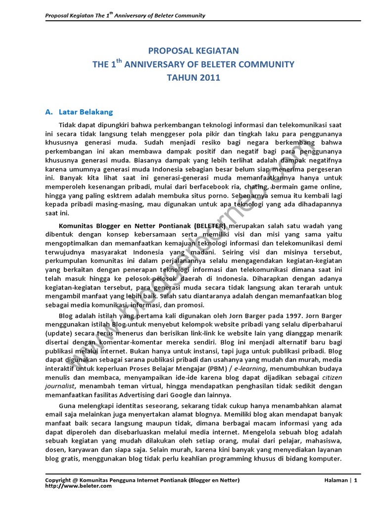 Proposal Kegiatan The 1st Anniversary Of Beleter Community Pdf