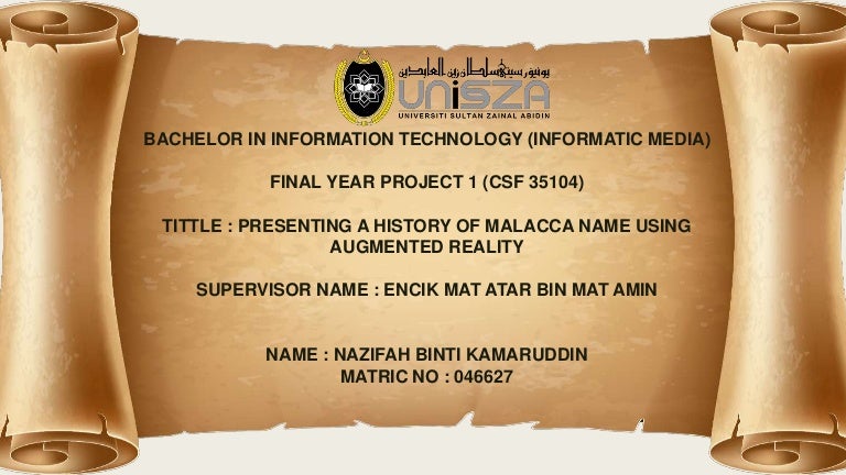 Presenting a History of Malacca Name using AR. PENULISAN PROPOSAL TESIS DR MOHD YUSRI IBRAHIM University Malaysia Terengganu yusriumtedumy. 68 BAB 5 PERBINCANGAN CADANGAN DAN KESIMPULAN 51 Pengenalan Bab ini akan membentangkan hasil penemuan kajian yang telah dilaporkan dan kesesuaiannya menjawab.