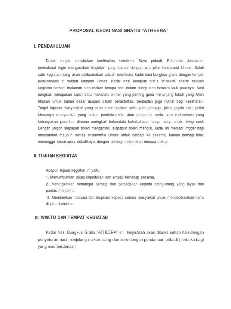 Proposal Kedai Nasi Gratis Atheera Pdf