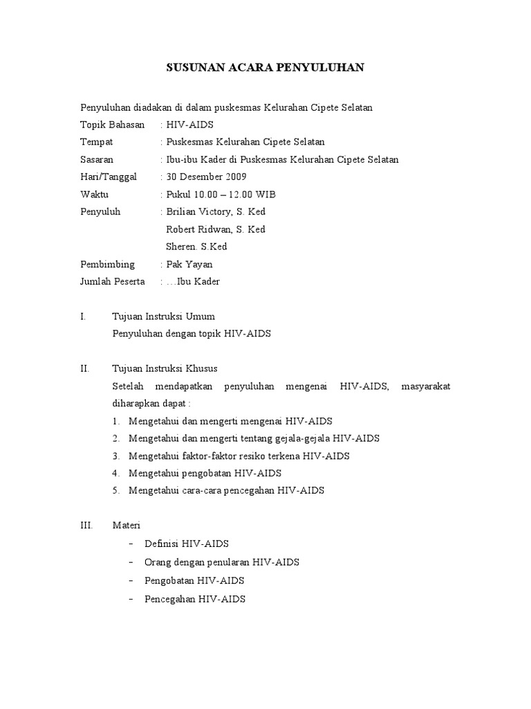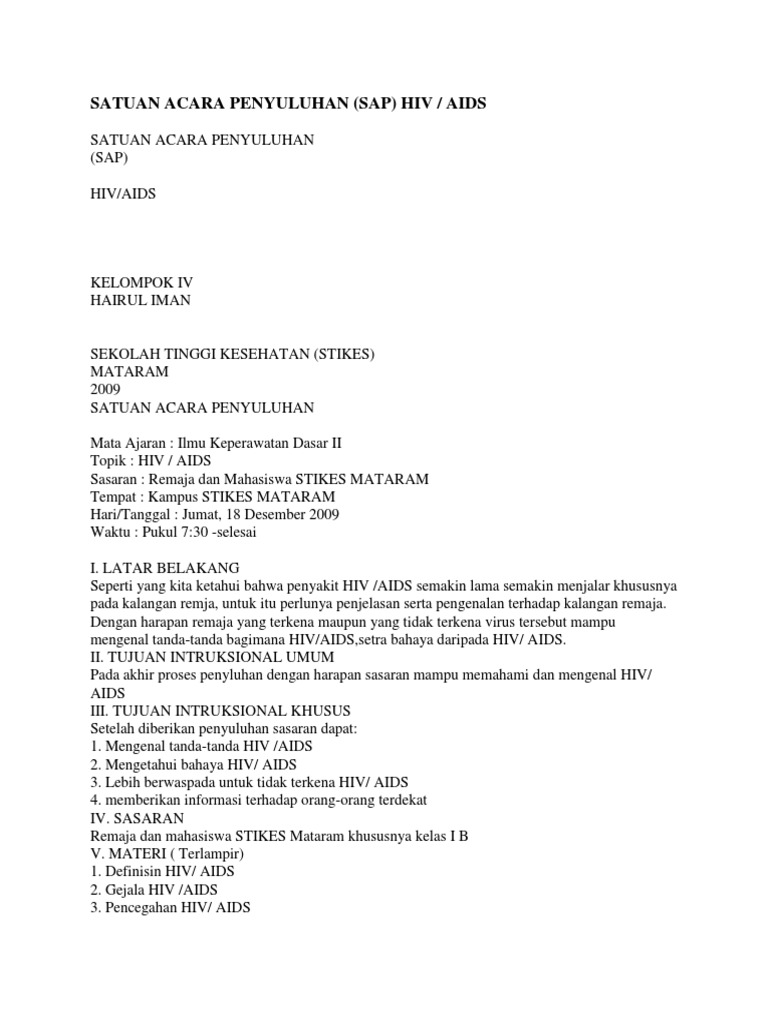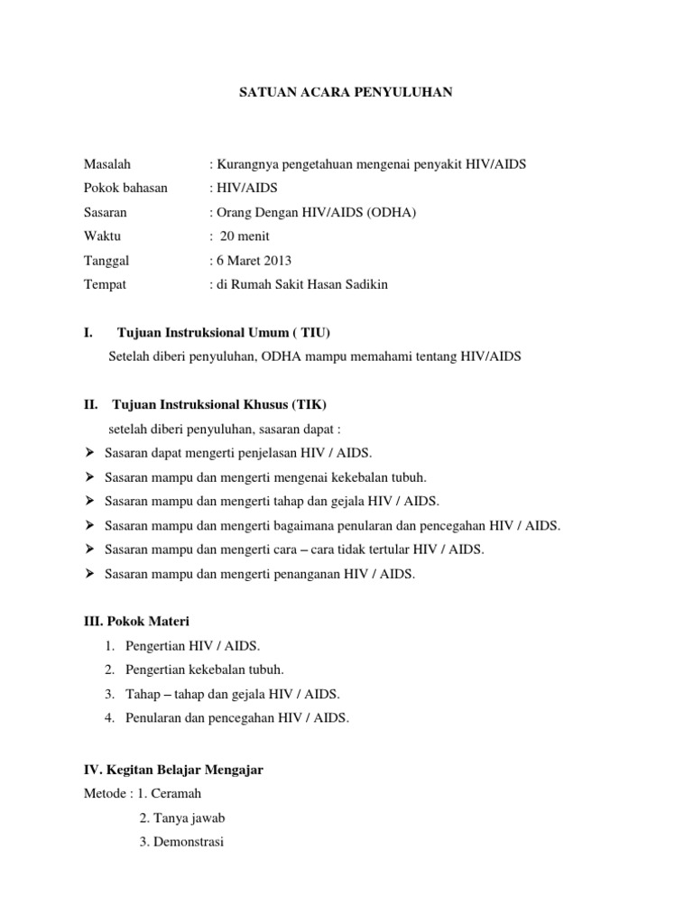 Satuan Acara Penyuluhan Hiv Pdf